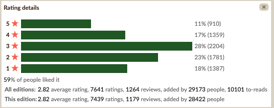 A couple of weeks ago I chose the book with the highest rating on my To Read List. So, I thought it might be fun to see which book had the lowest rating. I then became curious about the stats on this one and why it got such a low rating. If you want to see my post about my highest rated book go to this post.