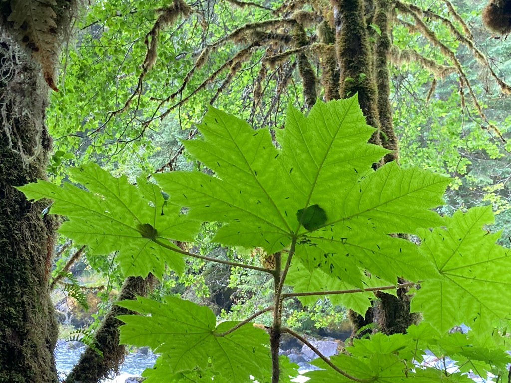 This is devil’s club and we saw it all over the forest. It has medicinal uses, especially the leaves, roots and bark. But the berries are poisonous to humans, although lots of animals including bears can eat them.