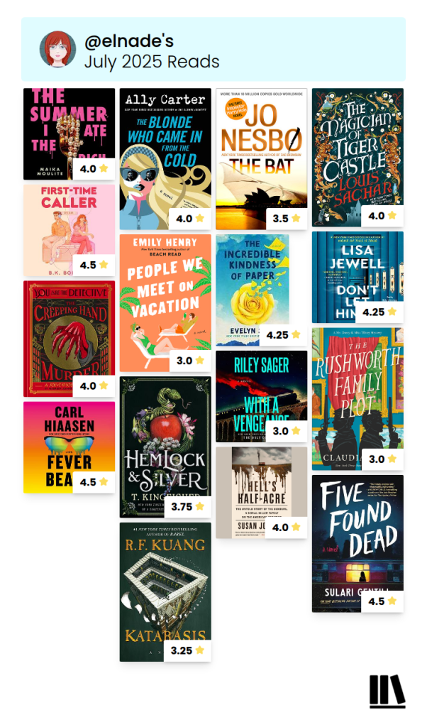 I hope you have a better time with your books in August! Reading this also made me think about how different people assign ratings differently – for me, a 3.5 book is still a book I quite enjoyed and would even recommend a lot of time, but it feels like under 4 stars for you is generally not positive!